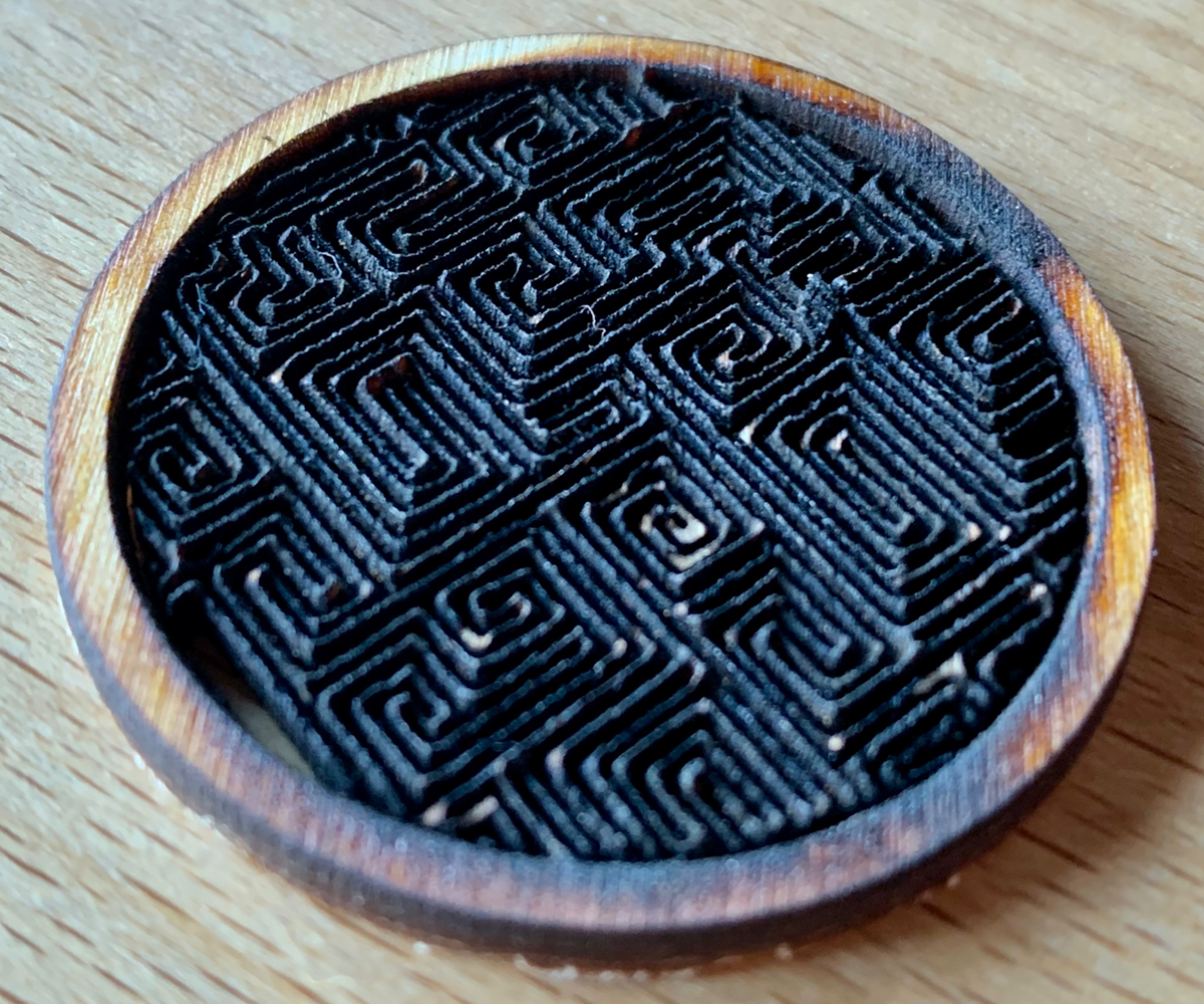 The collection has nine interchangeable styles, and the characters map to pattern units that can be combined to produce different kinds of spirals, loops, switchbacks and endless corridors.