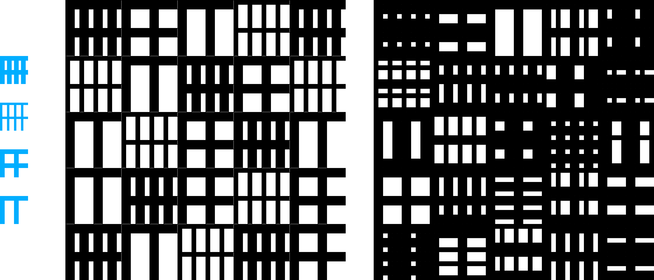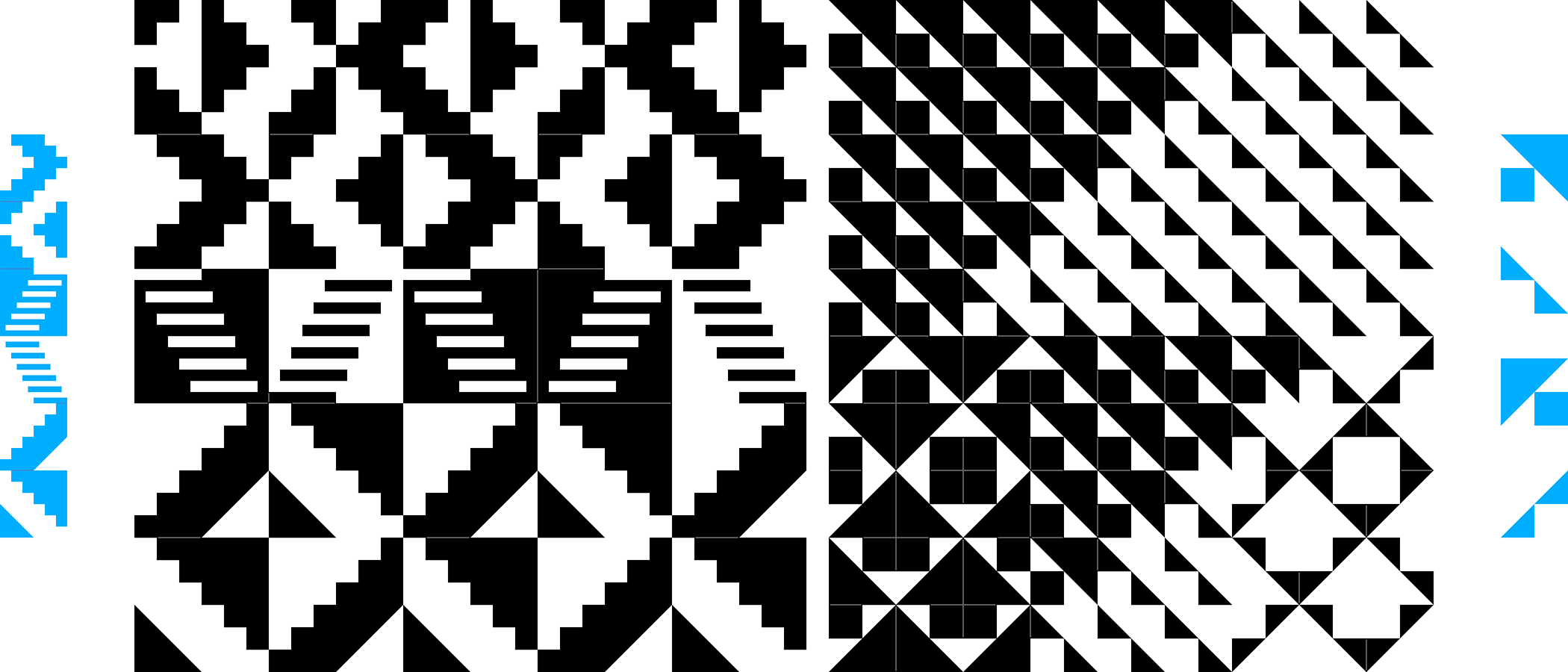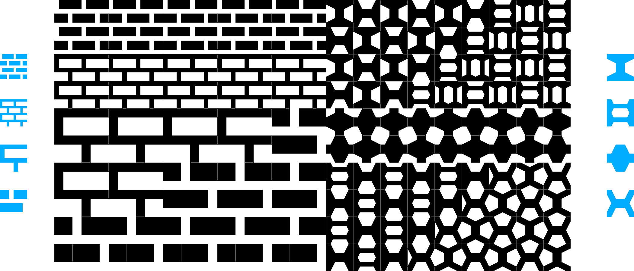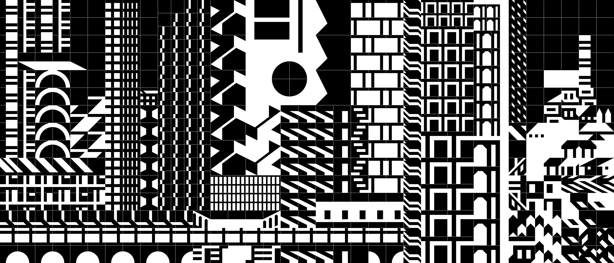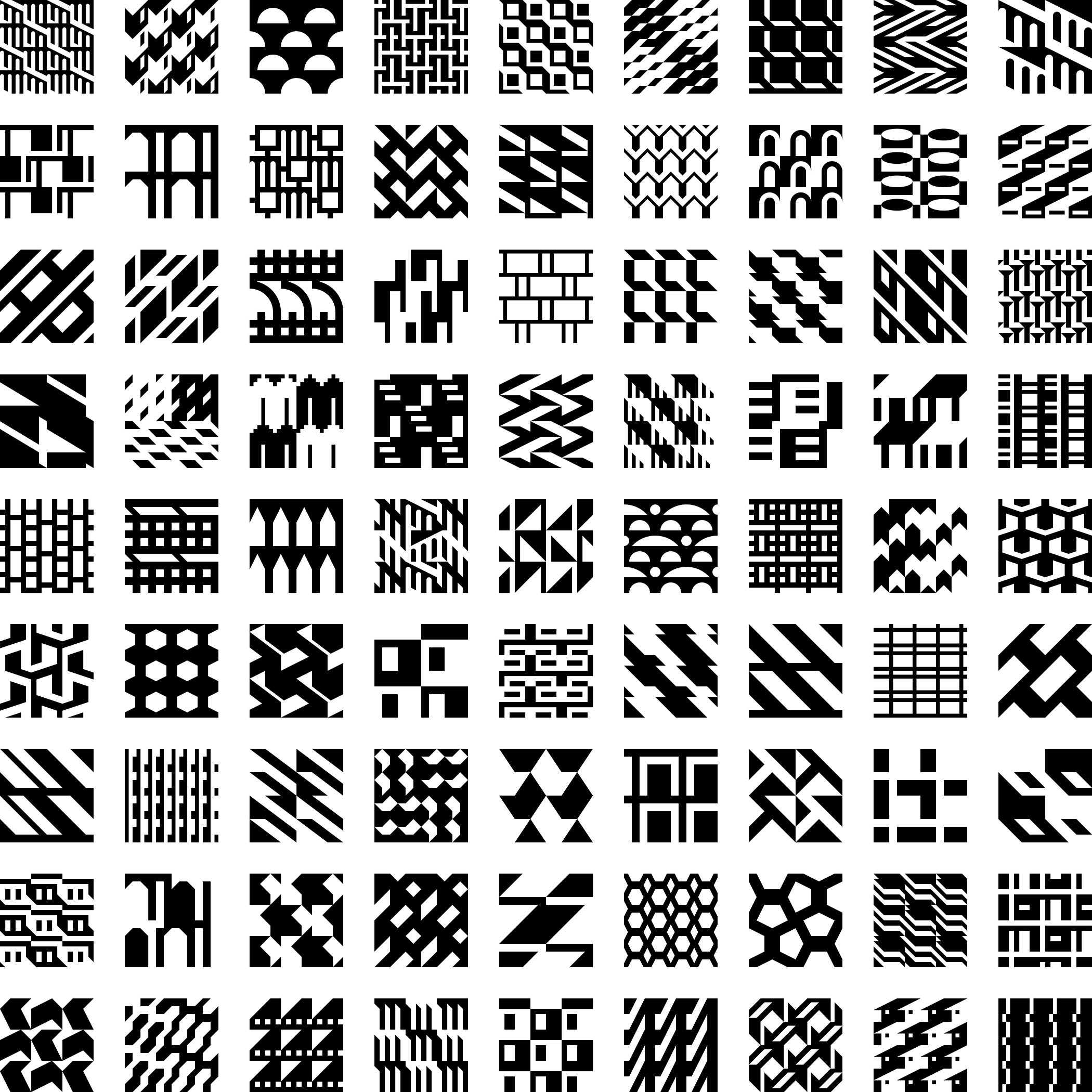 A collection of pattern building blocks that can be assembled into continuous textures, structures and city scenes.