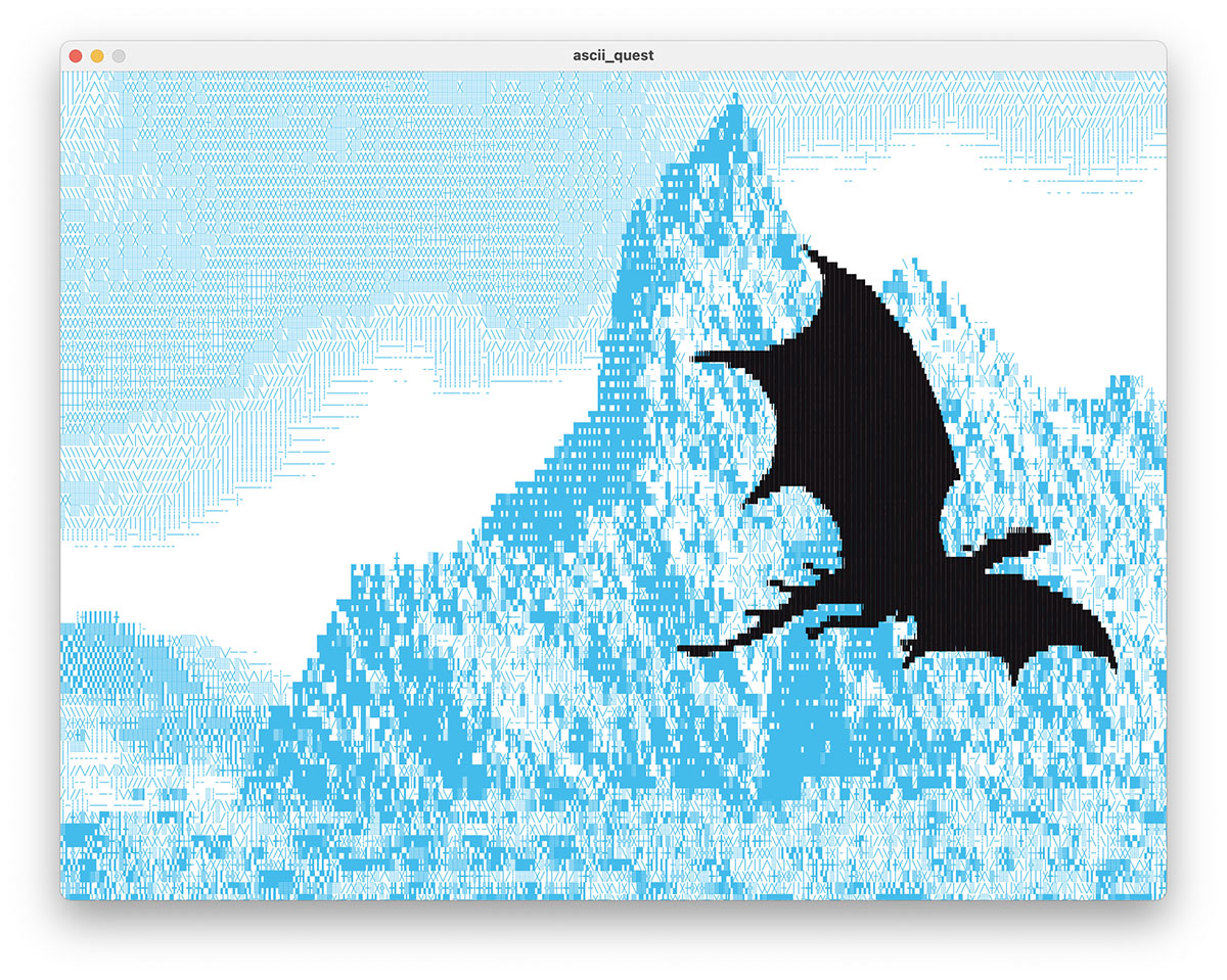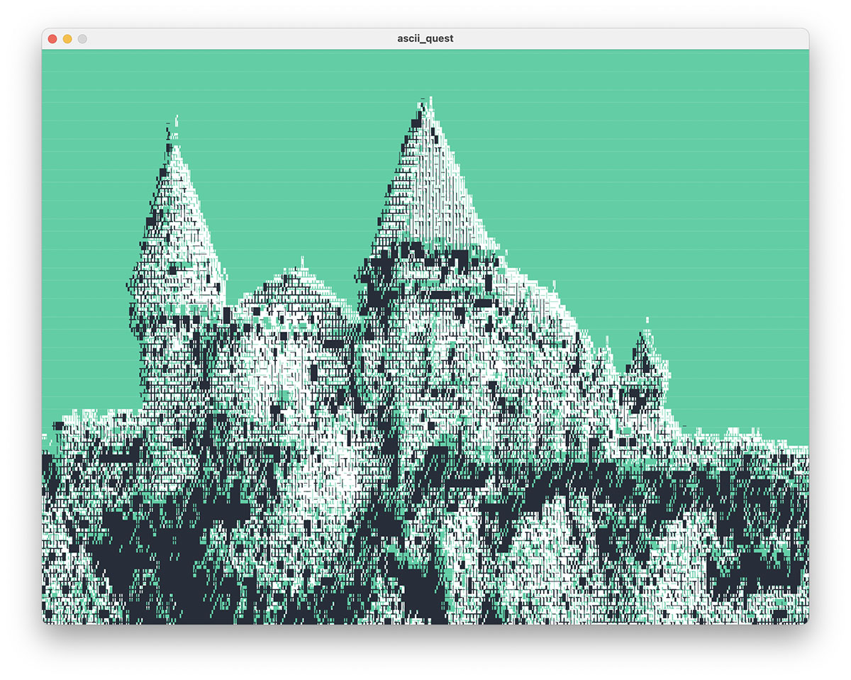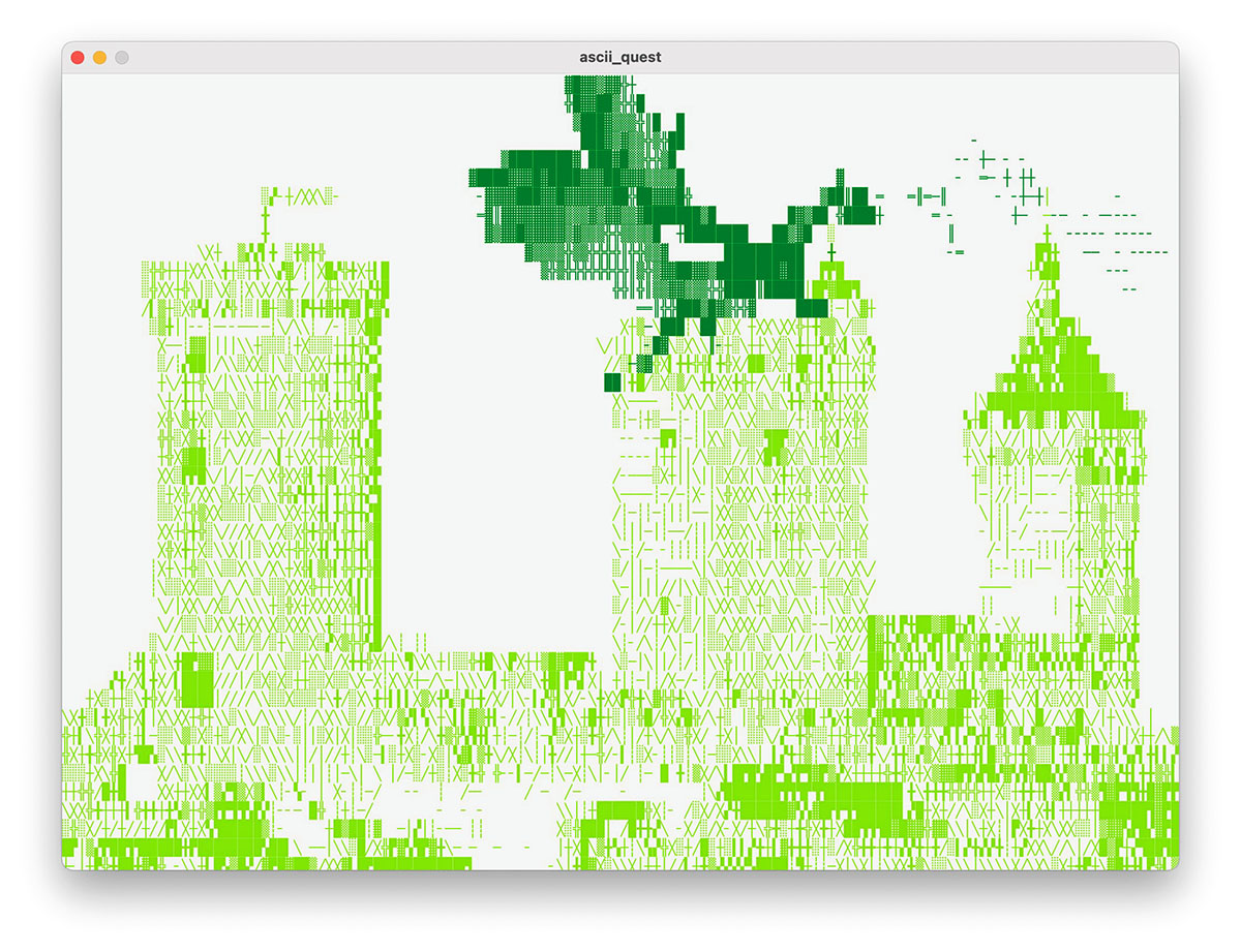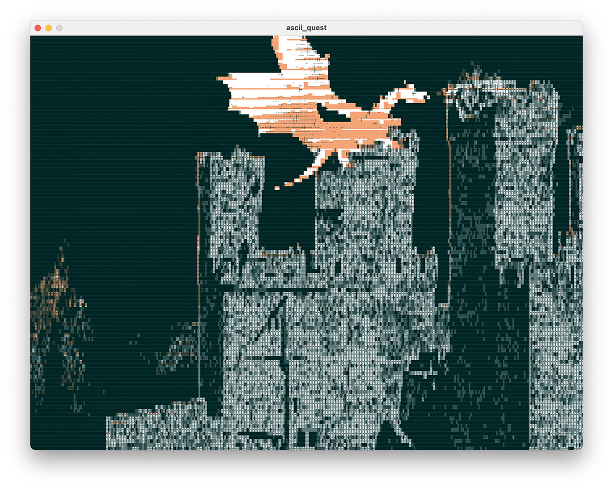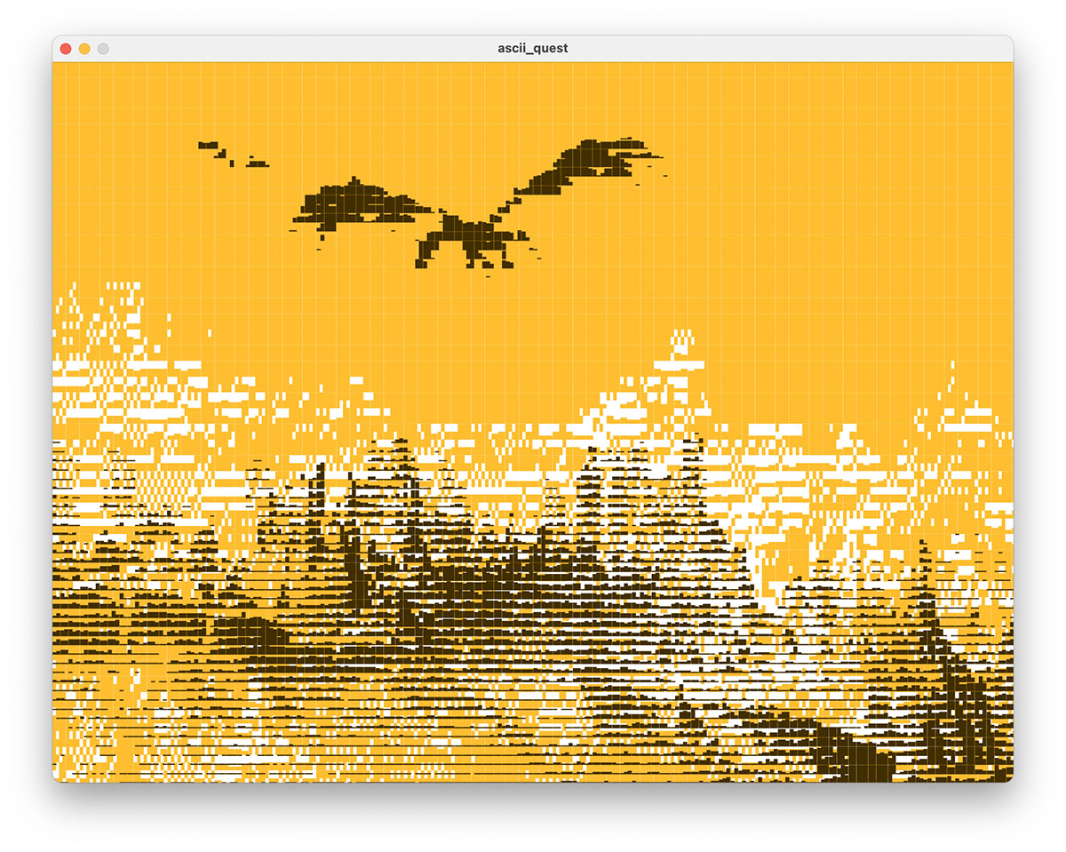 Initial concept art for a fantasy game that will combine text-based adventuring with lush ASCII art cutscenes.