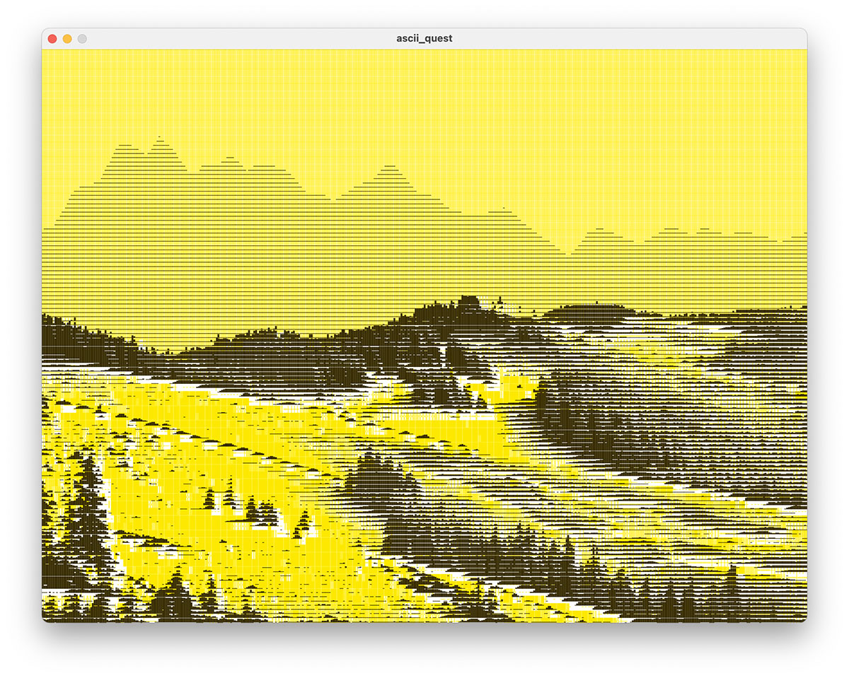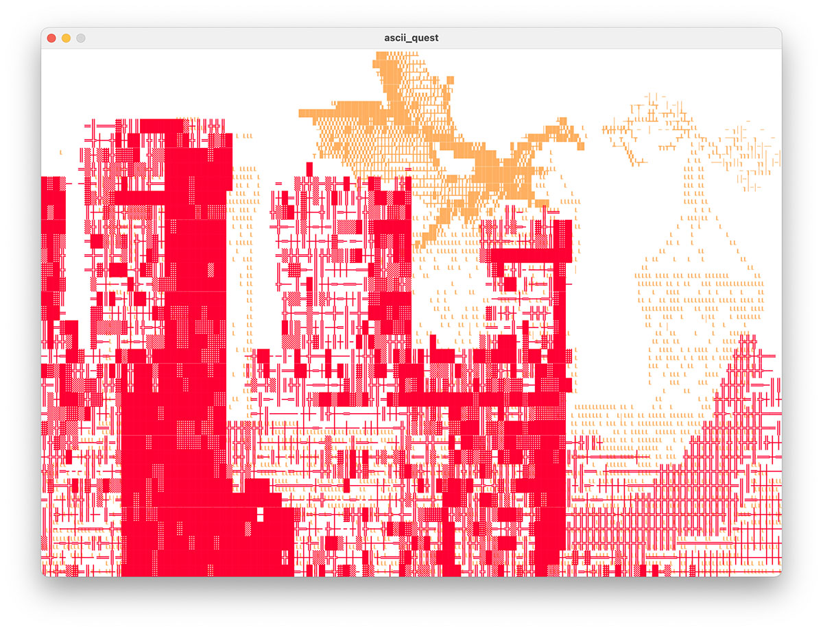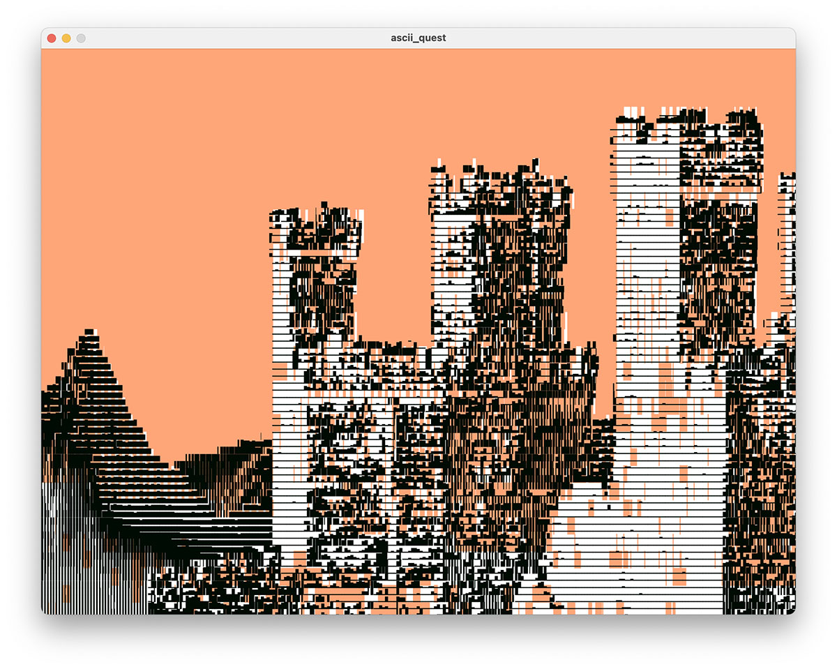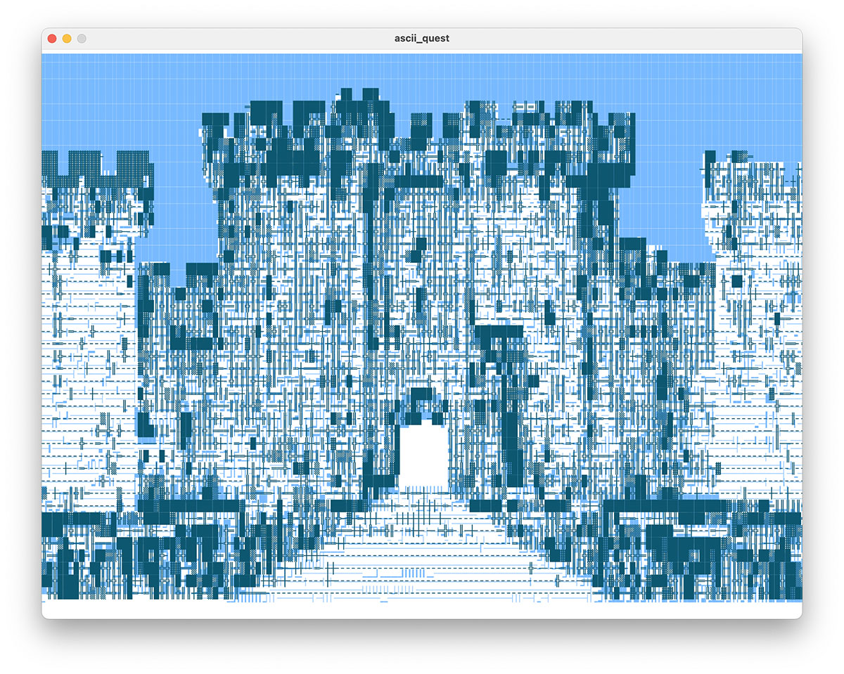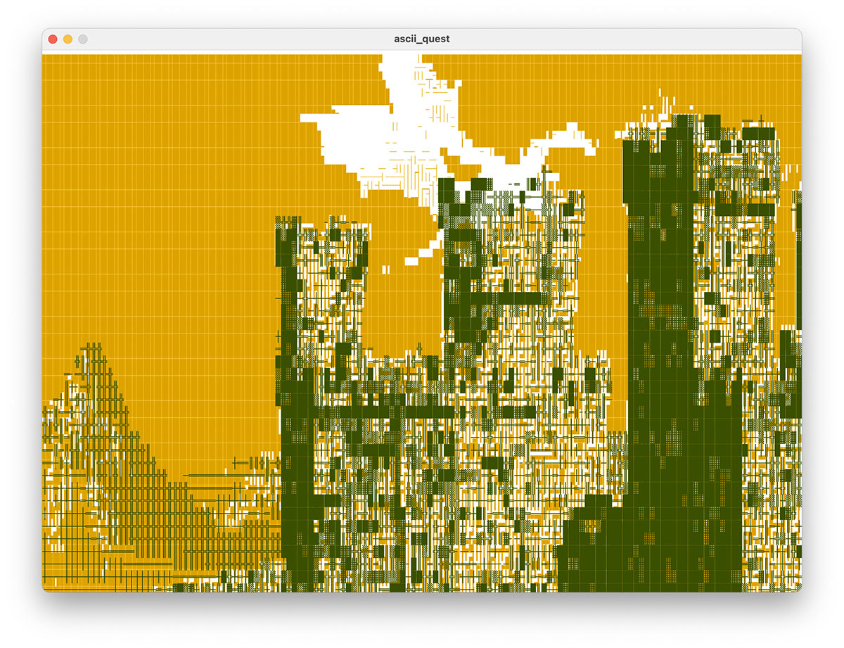 Initial concept art for a fantasy game that will combine text-based adventuring with lush ASCII art cutscenes.