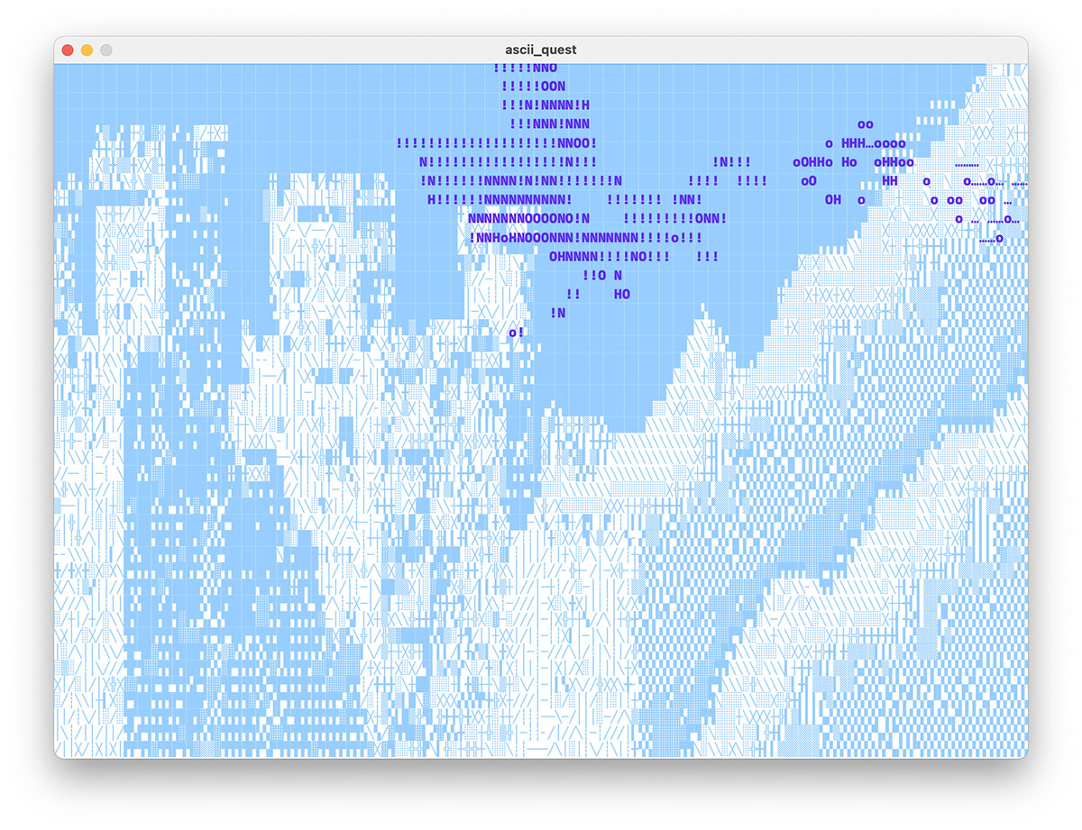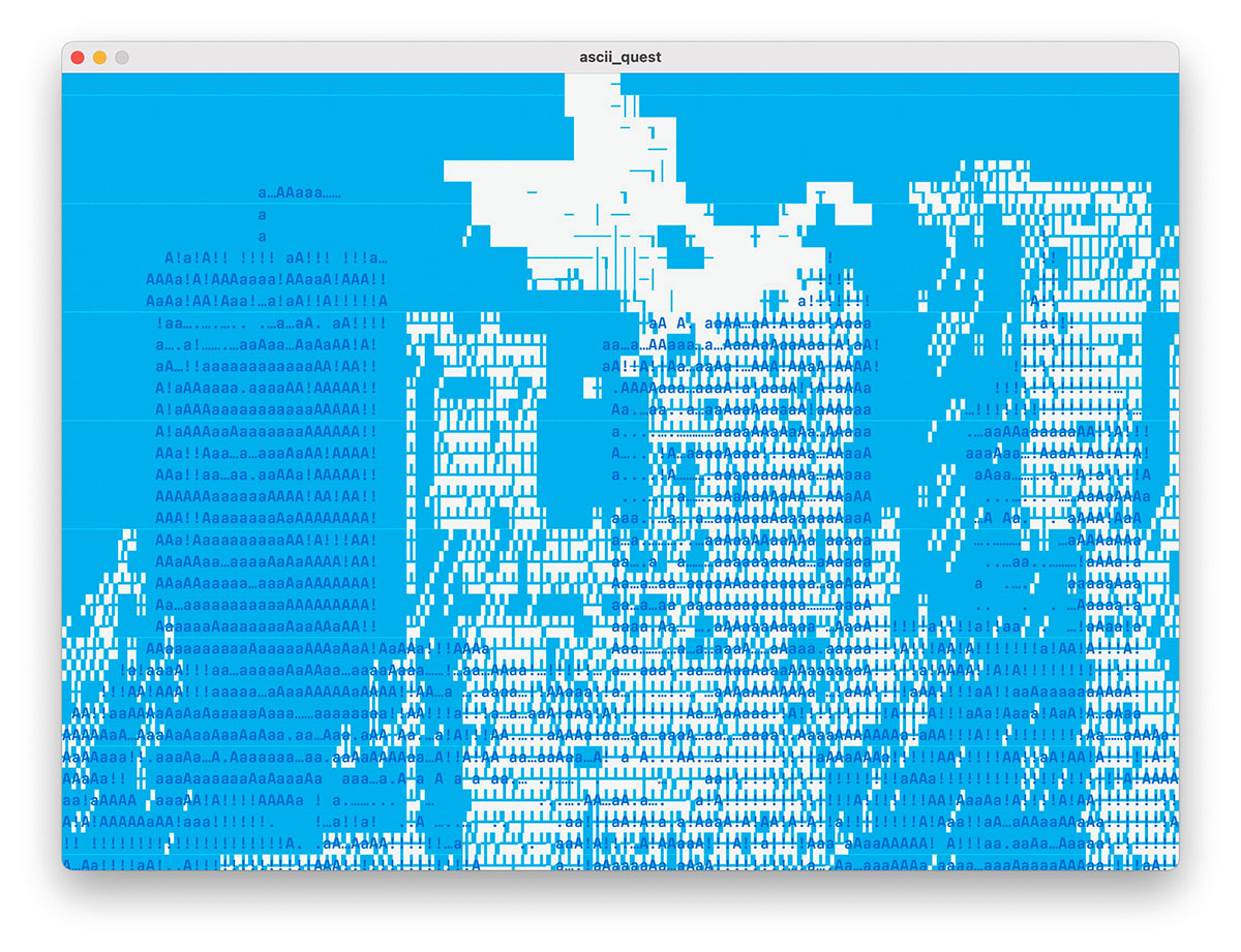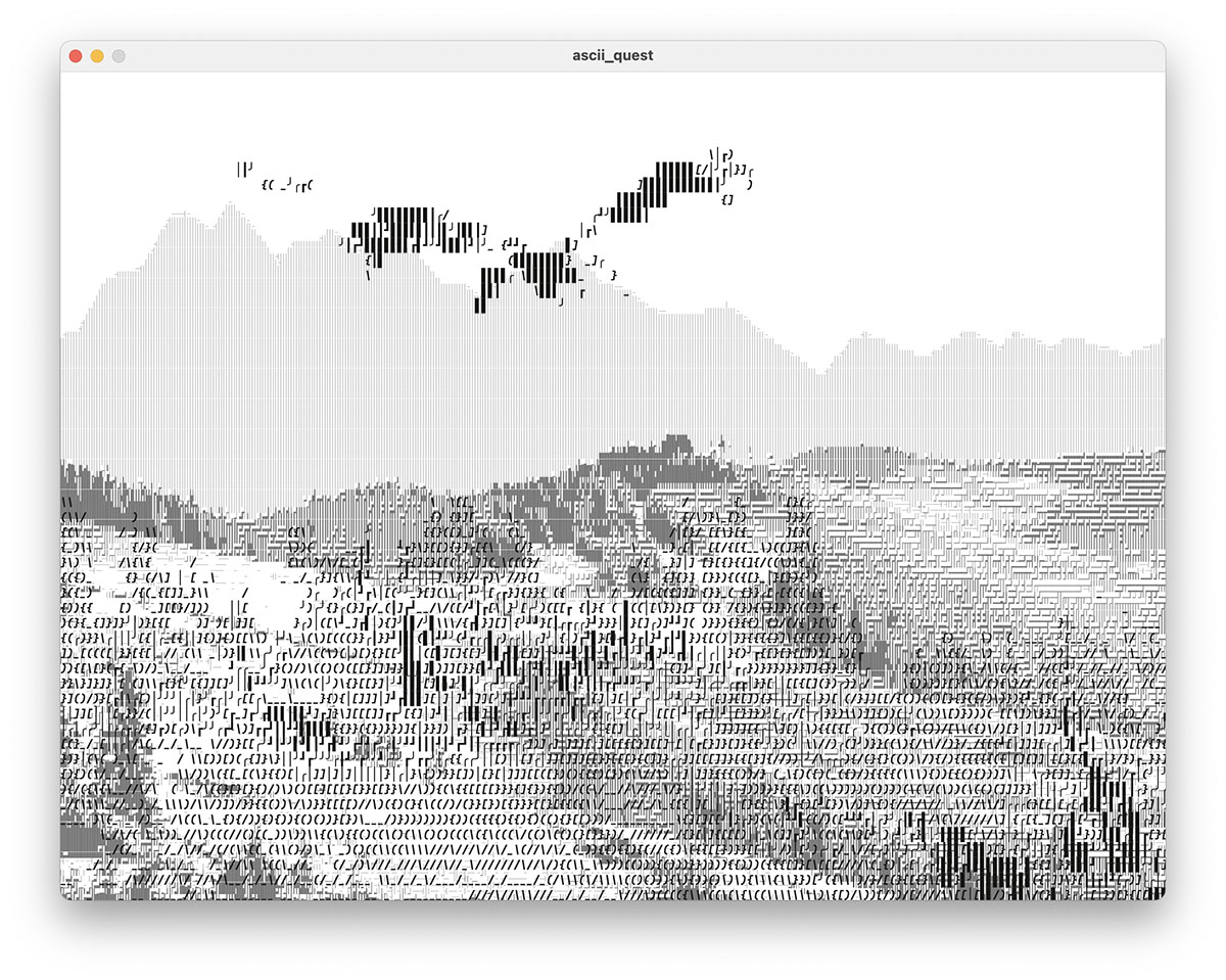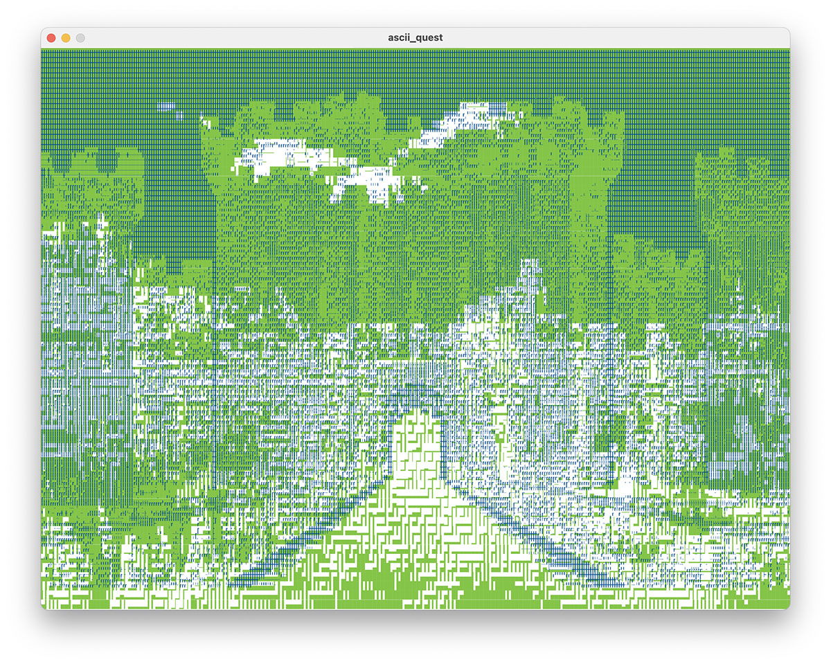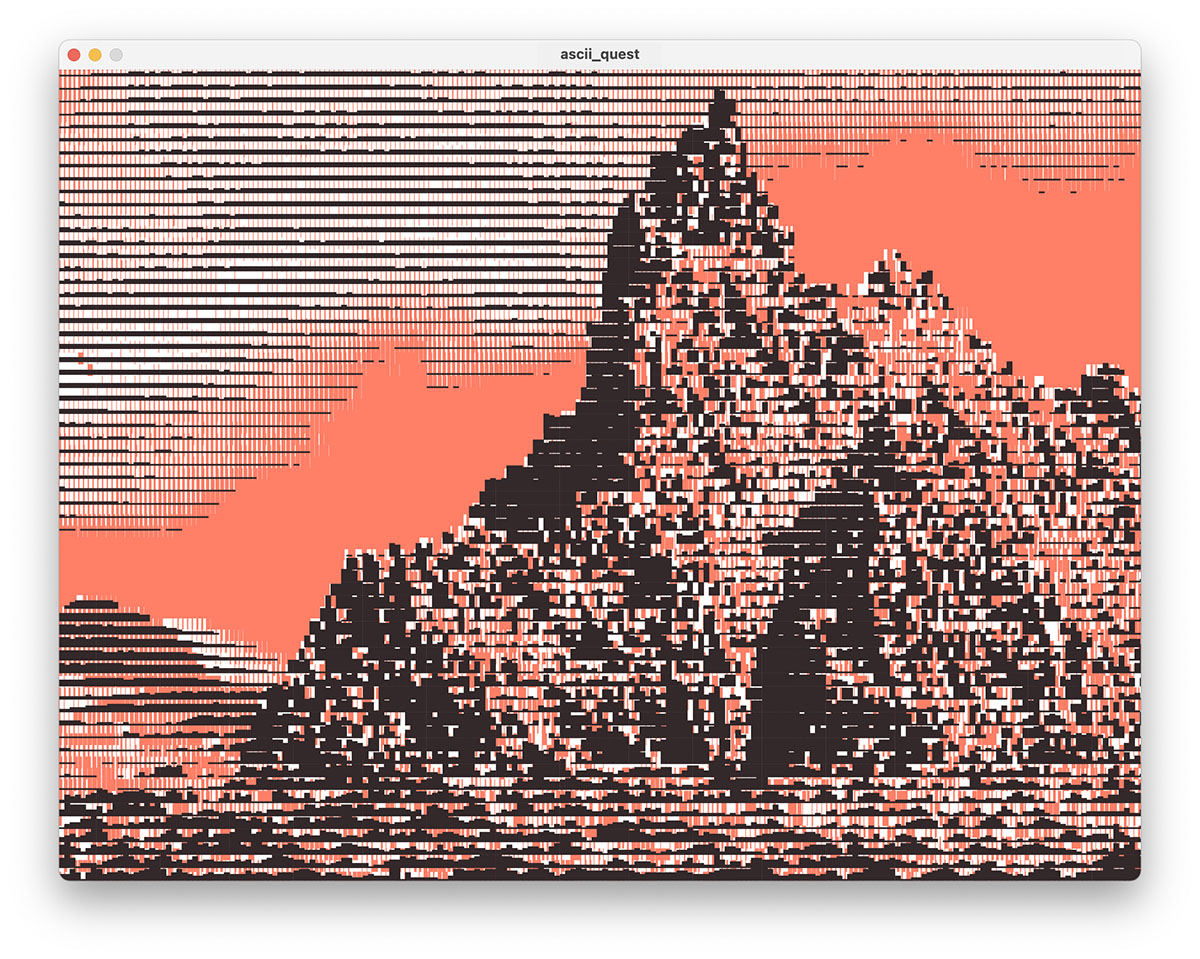 Initial concept art for a fantasy game that will combine text-based adventuring with lush ASCII art cutscenes.