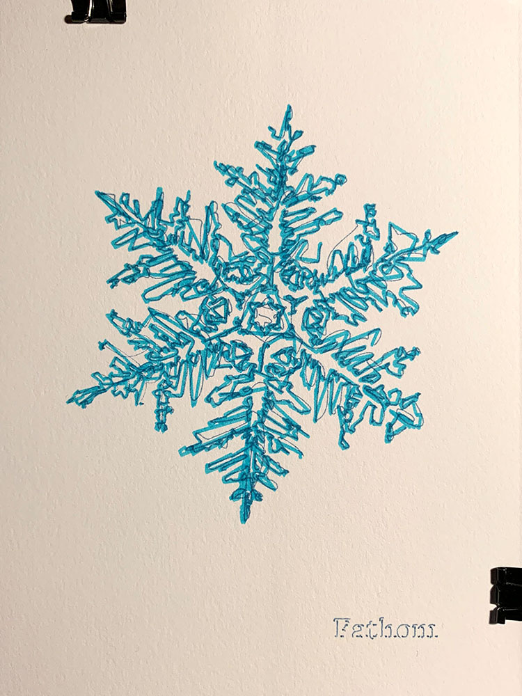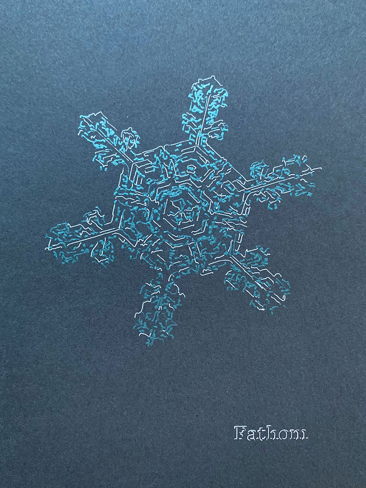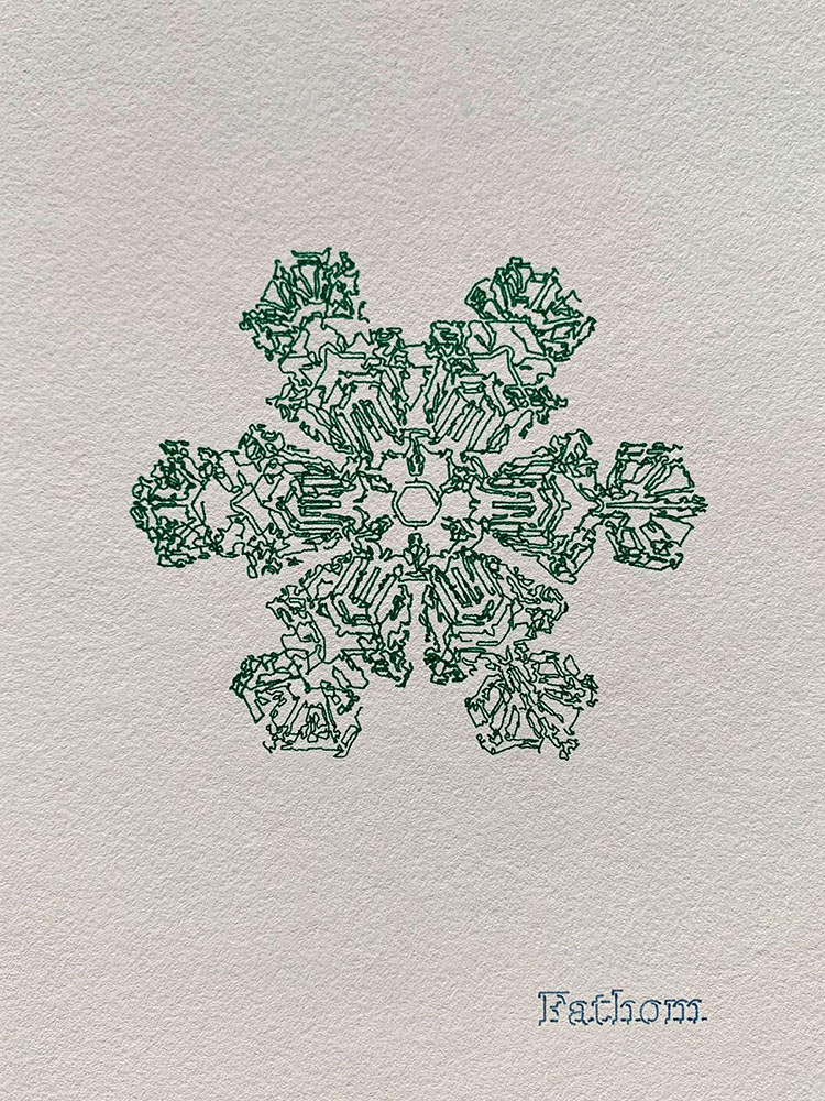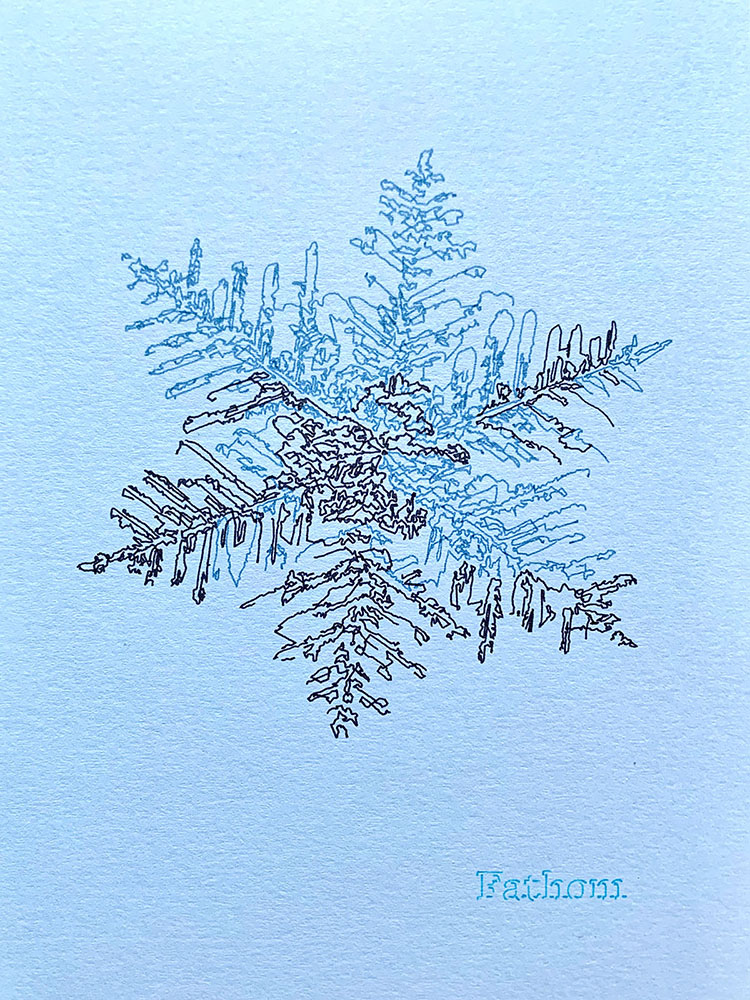 Generative holiday cards for Fathom studio clients and friends, drawn with a pen plotter and based on the groundbreaking microphotography of Wilson ‘Snowflake’ Bentley.