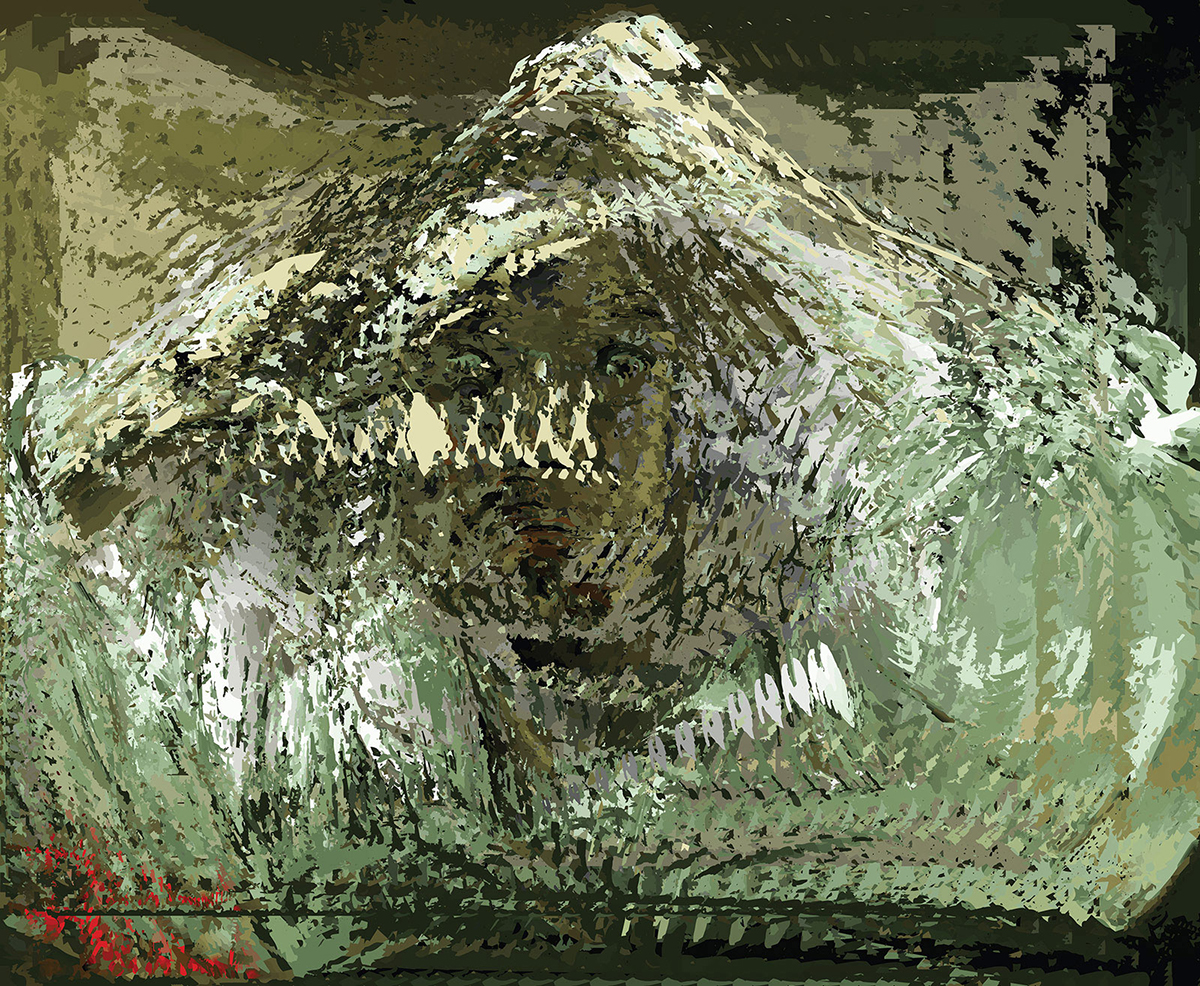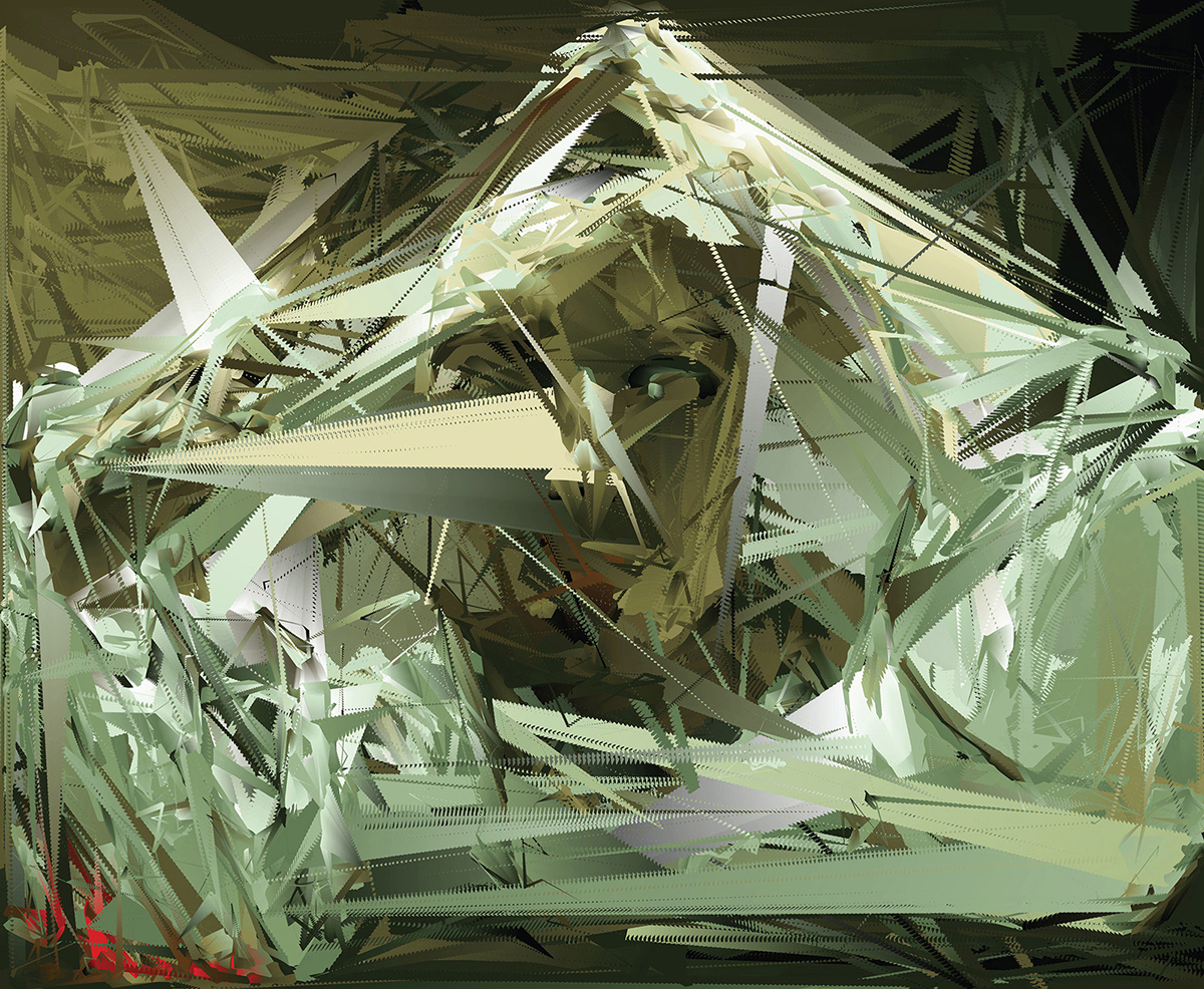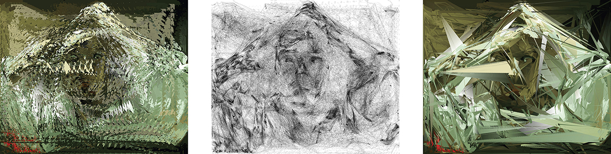 I played with that effect, overloading the blending with thousands of elements — in this series, fields of color processed from a Gustave Courbet self-portrait, The Desperate Man.