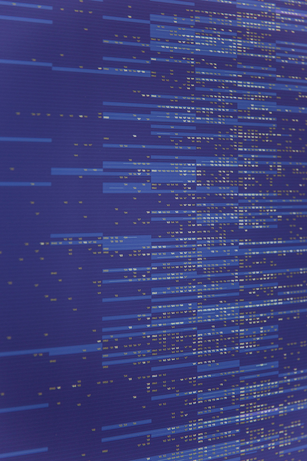 I also created a poster representing the full set of interviews, visualized as a tapestry of people’s memories of distinct events and blurrier, looser spans of time.