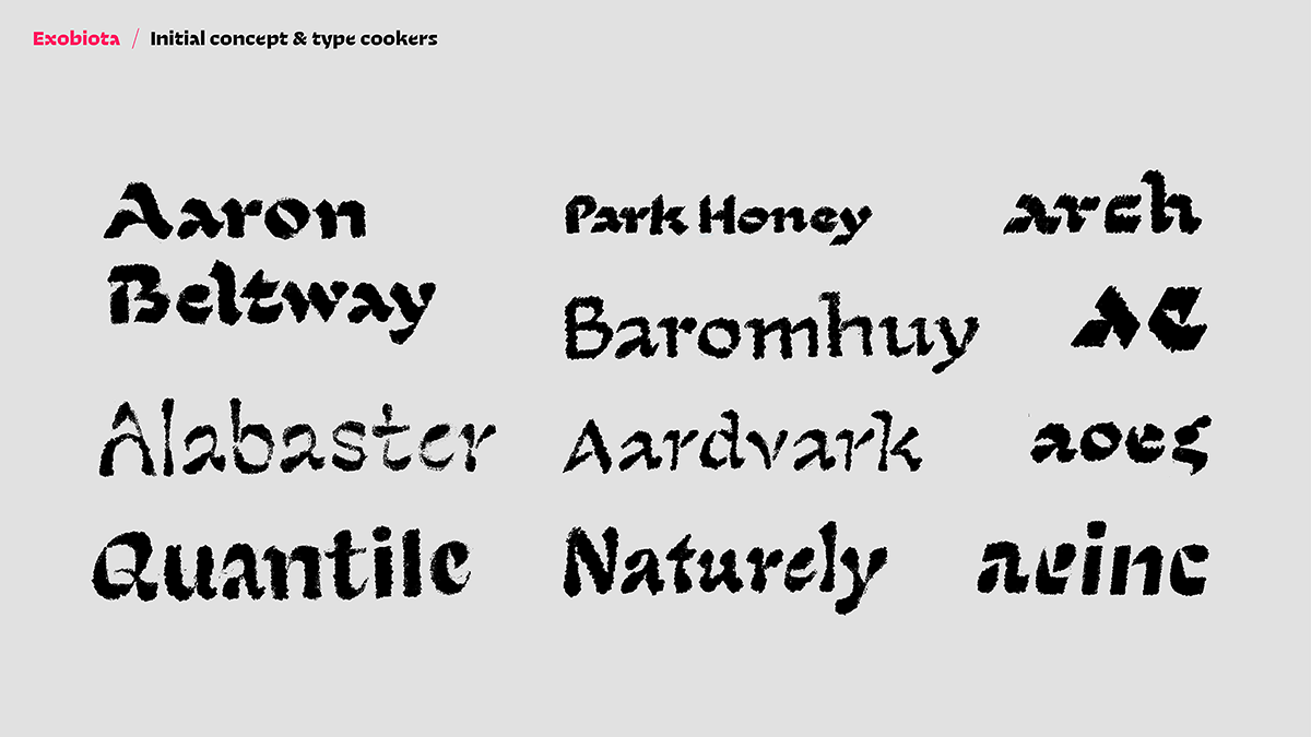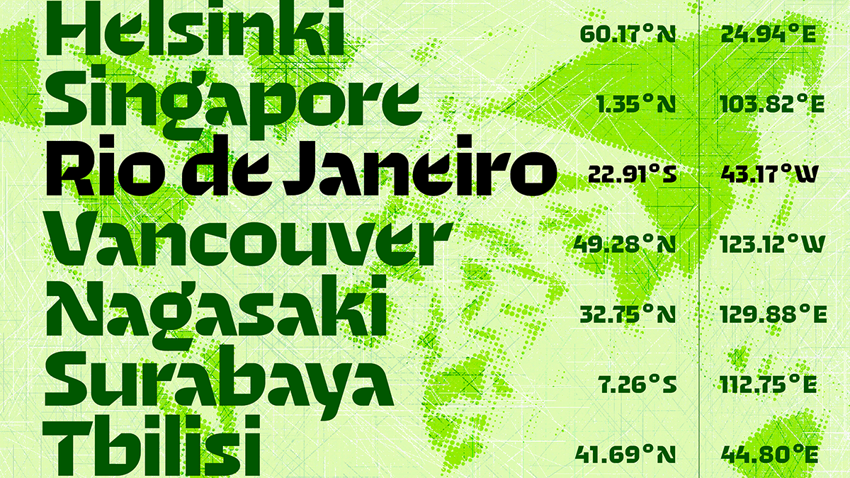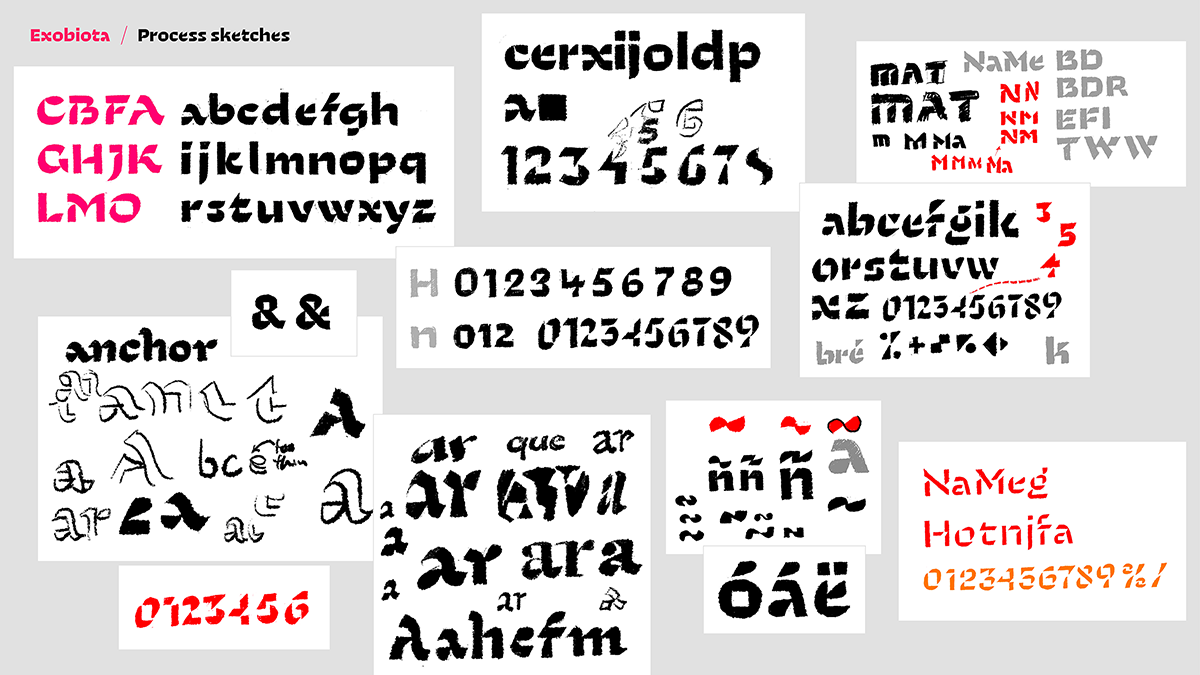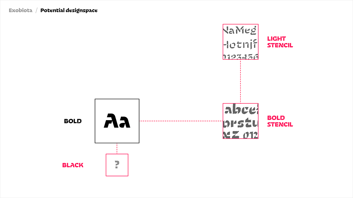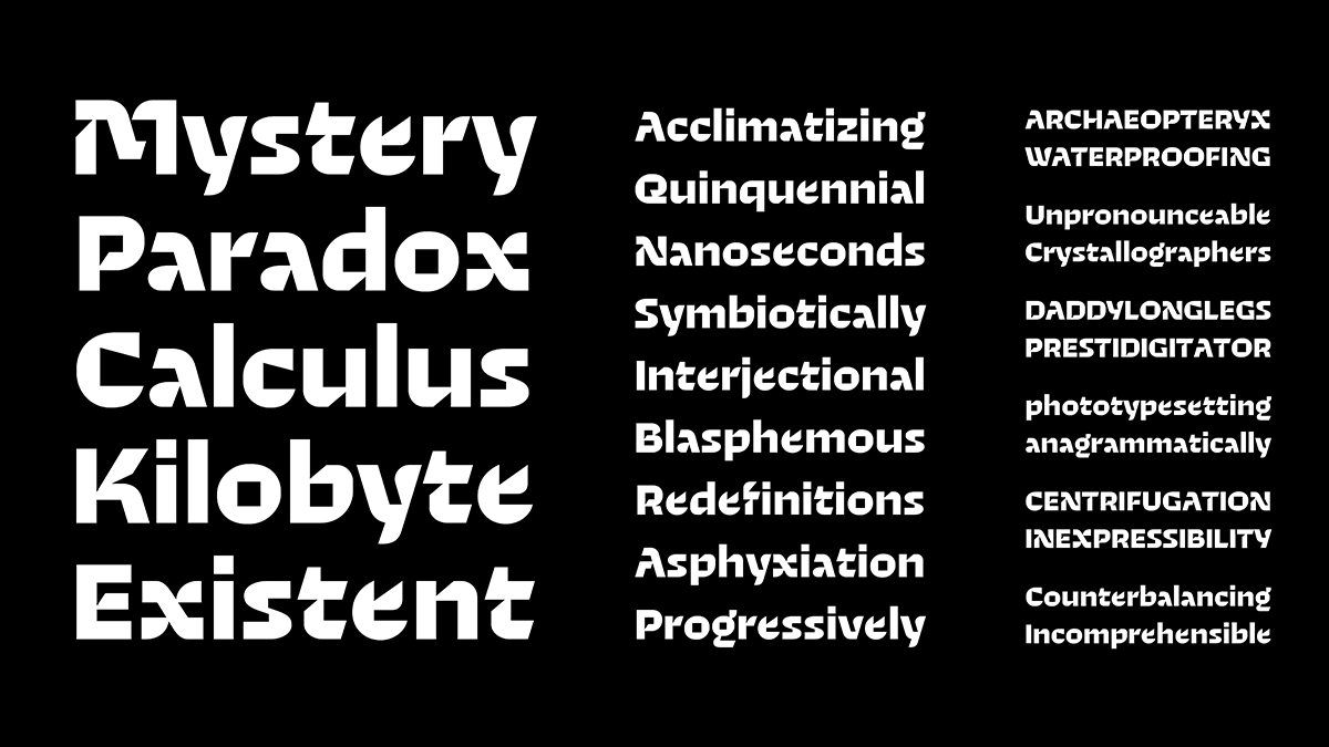 Exobiota is a work-in-progress font with a retrofuturist sensibility. Currently, it includes a heavy weight and samples of a stencil companion style in a lighter weight.