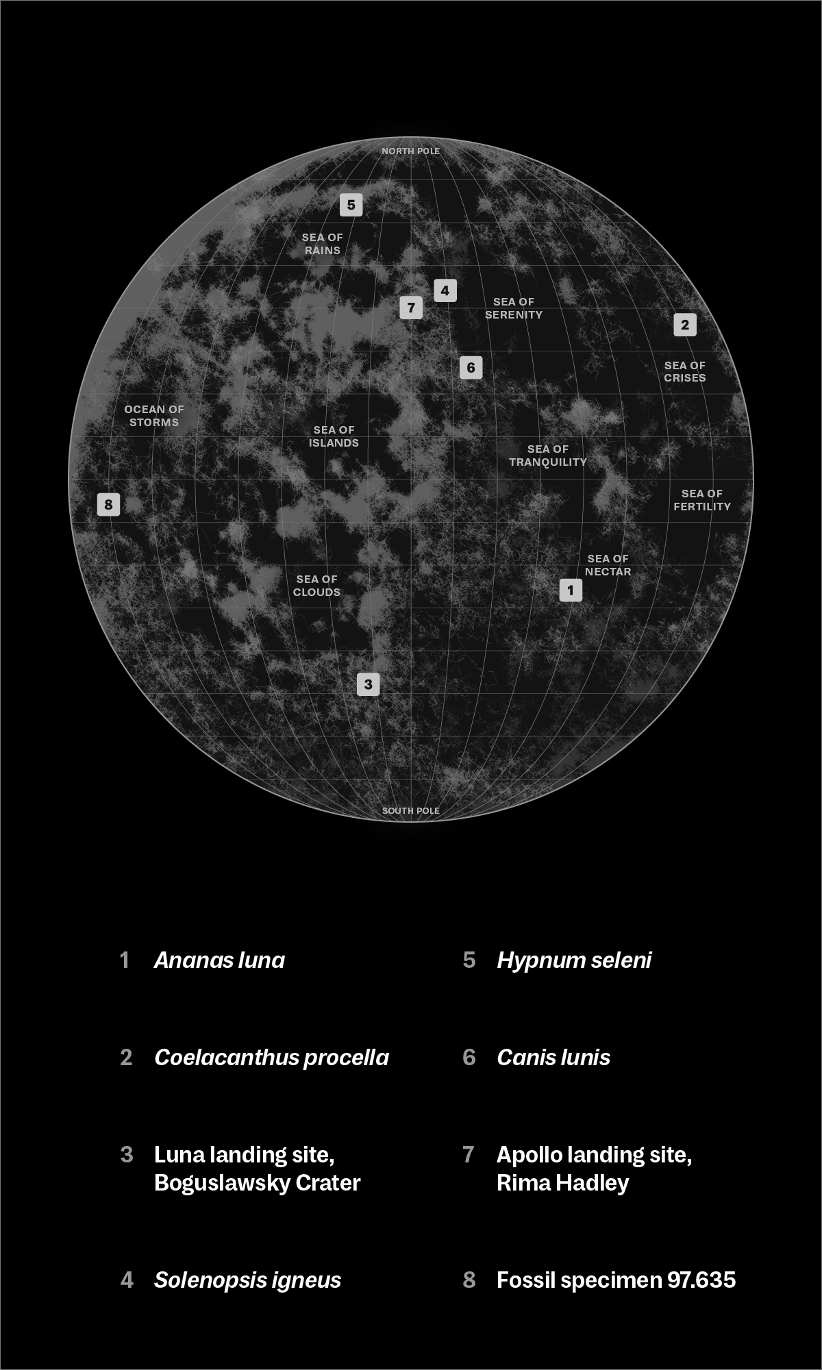 { Lunar Landscapes Today is a monthly survey of ecology, archaeology and geology on the Moon. It features a diverse collection of original selenograms of extant lunar species and their habitats, ancient fossils and historical artifacts. }