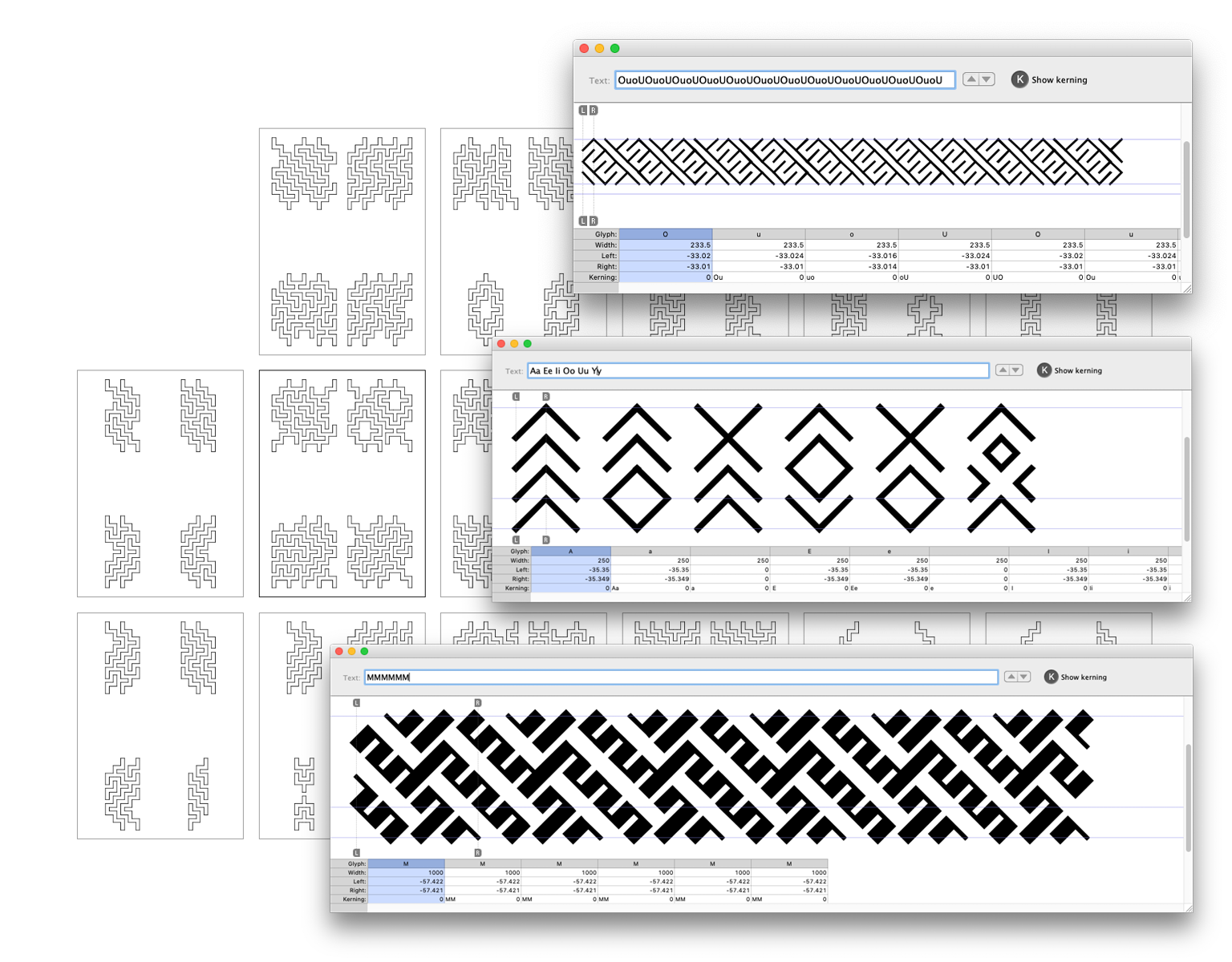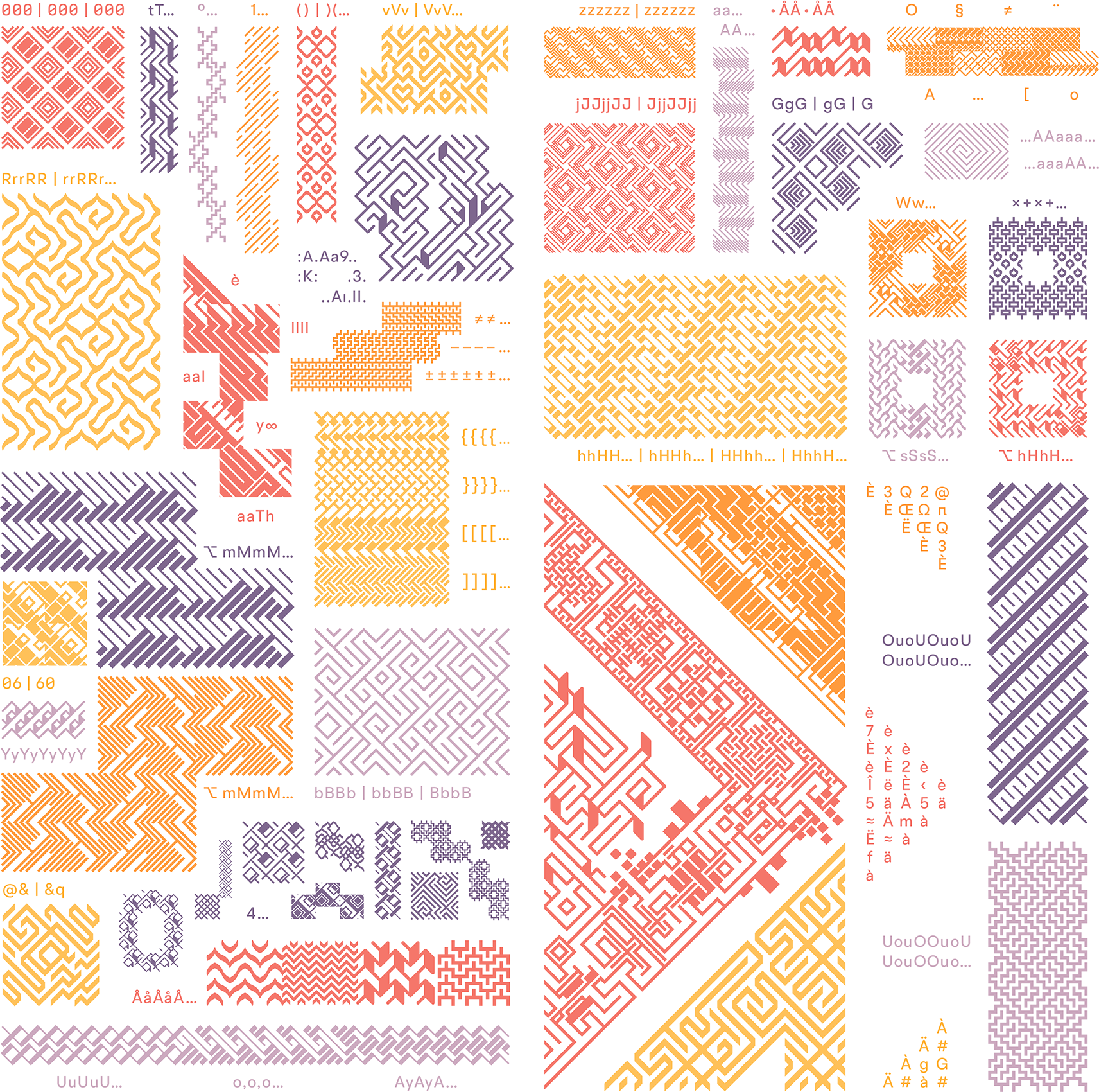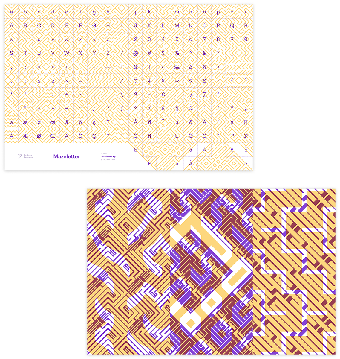 Mazeletter is a pattern font family I designed for creating infinitely tiling mazes.