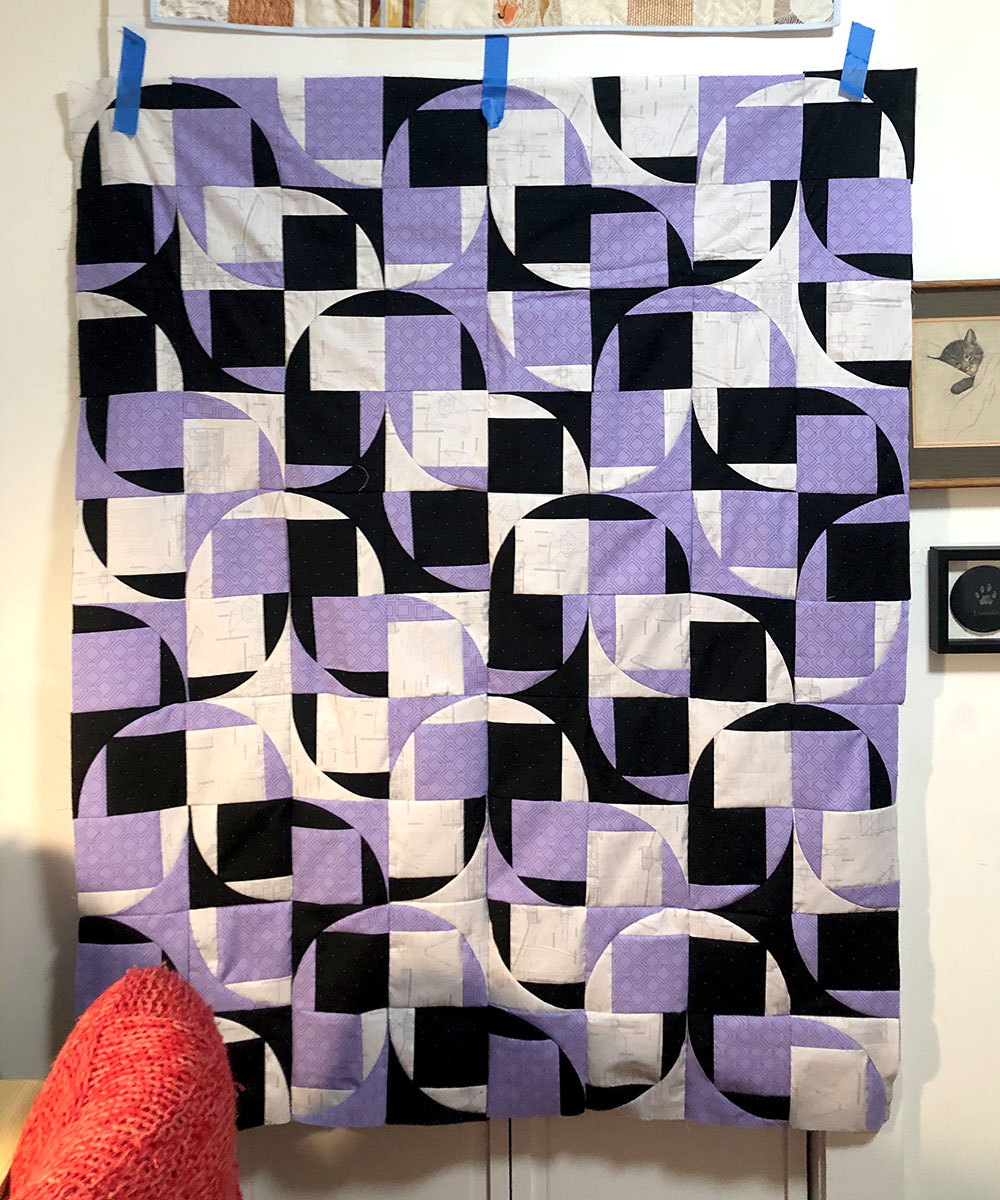 A unique quilt created collaboratively with my friend Ellory. The design features a single repeating tile and uses fabrics printed with the blueprint of NASA’s Webb space telescope.